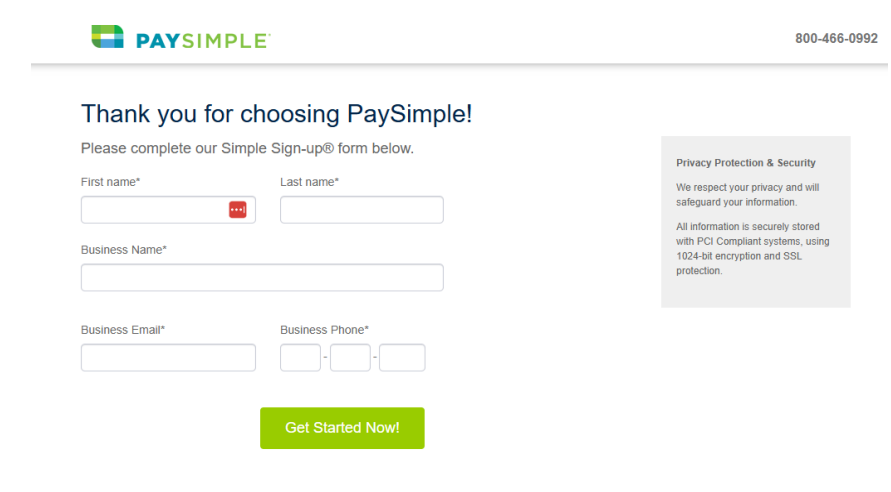 Please make sure that you enter everything truthfully and completely otherwise the application will get rejected by PaySimple.