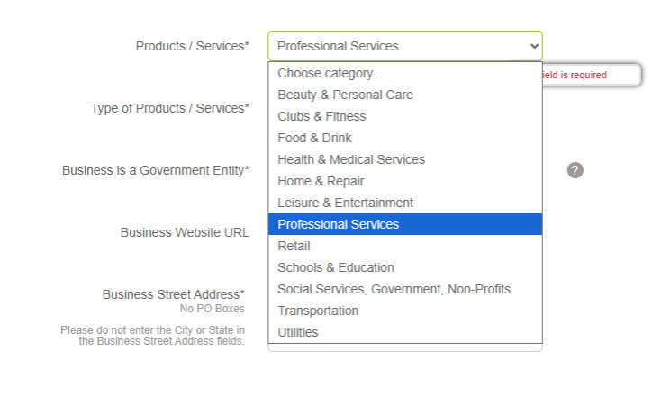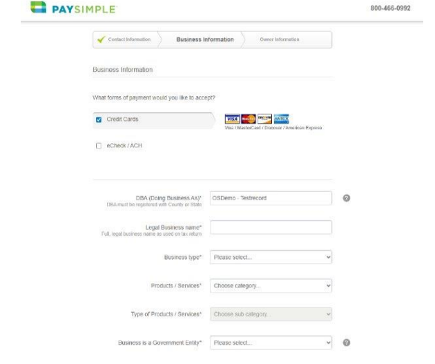 Do not make up a business name as PaySimple will verify if your business is registered and if it isn't, your application will get rejected.